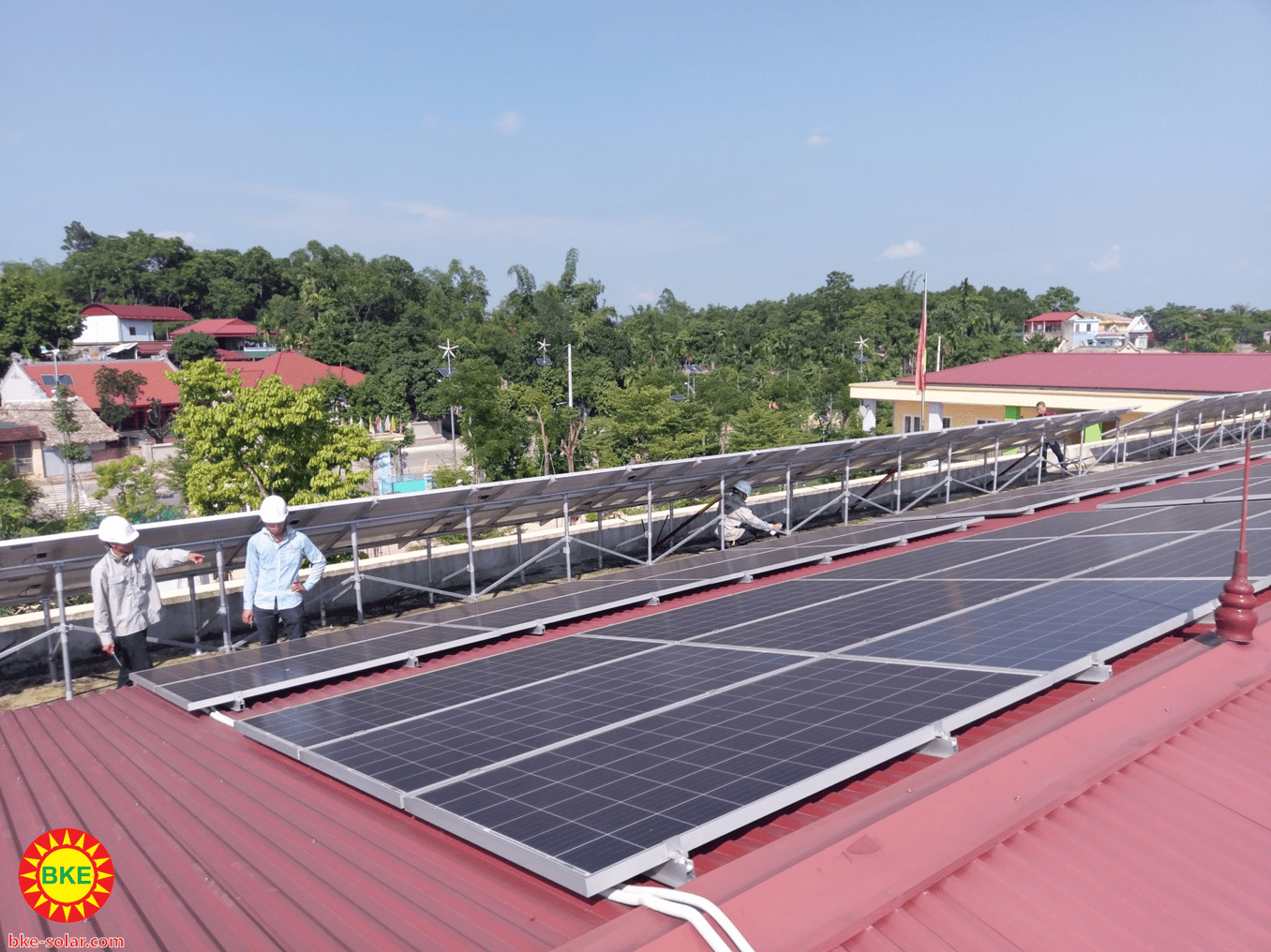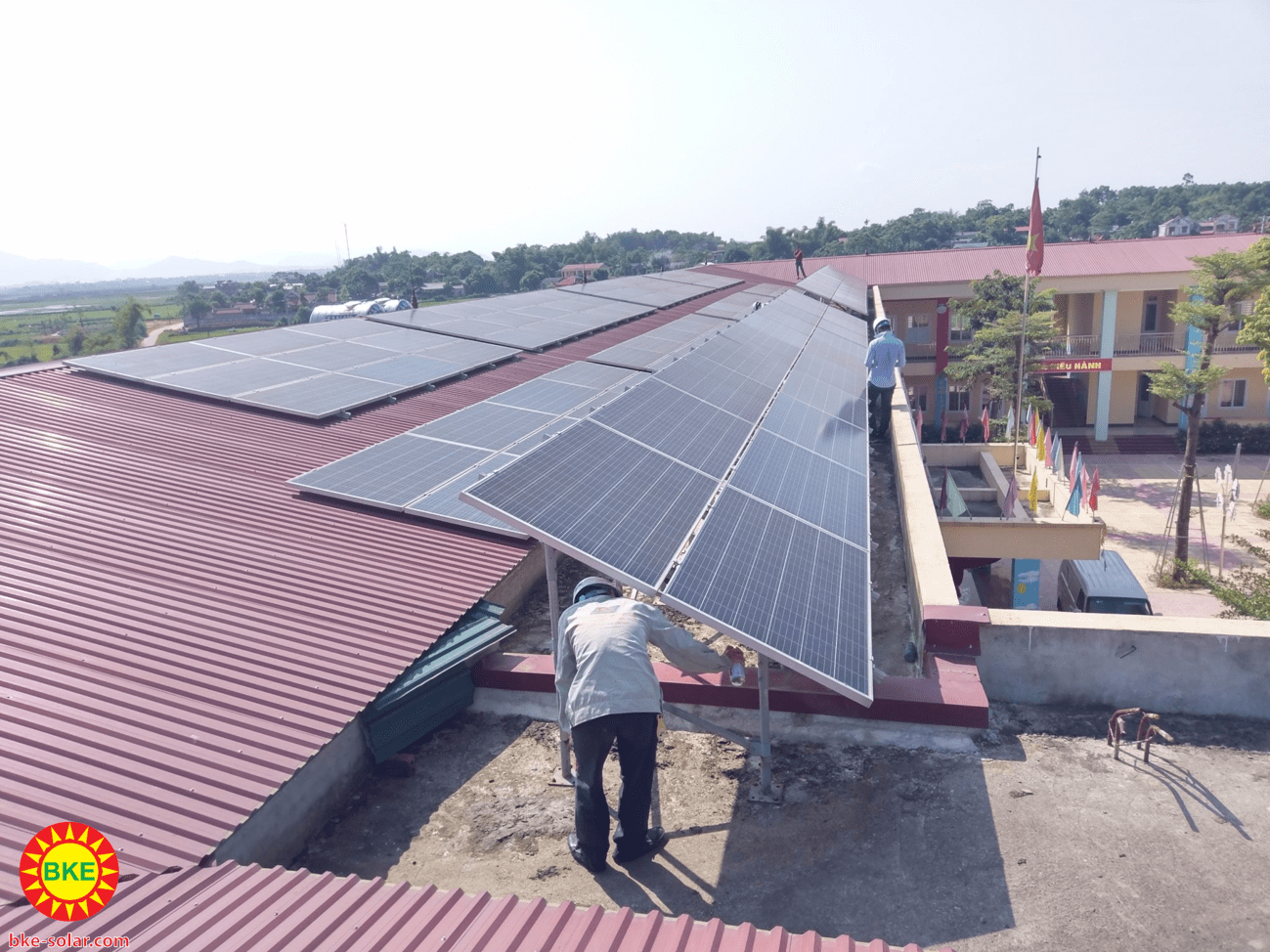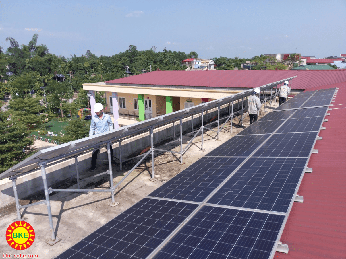 Sau khi lắp hoàn thành hệ thống điện mặt trời cho trường học tại Phú Thọ ngoài việc giám sát hệ thống qua bộ giám sát, Công ty BKE-SOLAR đã đến bảo dưỡng theo lịch đã đề ra như trong hợp đồng. Trong tuần vừa qua mặc dù chưa đến lịch bảo dưỡng nhưng vì mới qua mấy trận bão anh em cũng thấy hơi lo lắng nên đã sắp xếp lịch để đến thăm nom. Thật bất ngờ , khi anh em chúng tôi đến nơi thấy hệ thống giàn pin vẫn nguyên đó, những tấm pin được mưa gột sạch bụi, những tia nắng chiếu vào làm mặt kính sáng loáng.