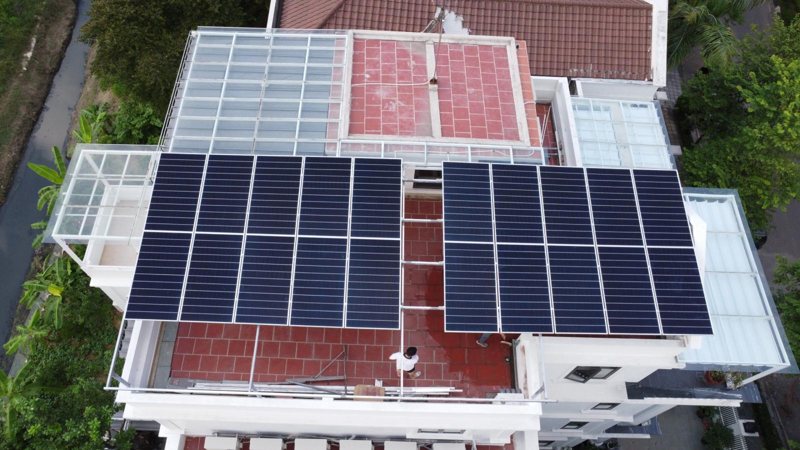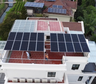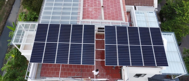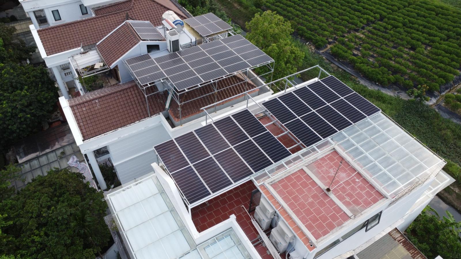 Hệ thống điện mặt trời hòa lưới bám tải công suất 10,5 KWP áp mái cho sản lượng mỗi ngày khoảng 30 - 40 KWH, cung cấp nguồn điện năng trực tiếp cho các thiết bị điện sử dụng vào ban ngày giúp giảm tới 30% hóa đơn tiền điện hàng tháng.
